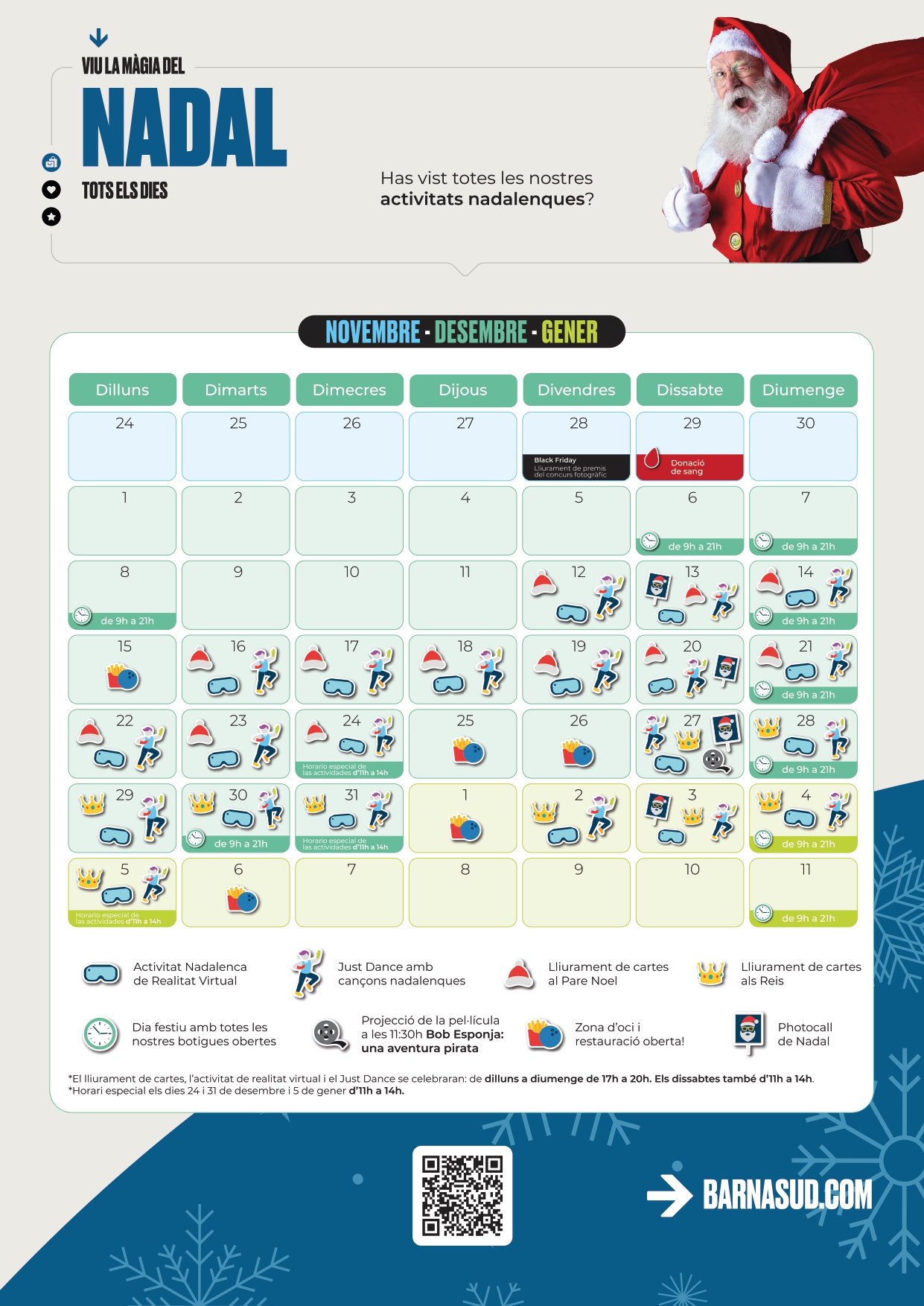 Barnasud ha preparat un calendari d’obertures especials per facilitar que pugueu fer totes les vostres compres nadalenques: